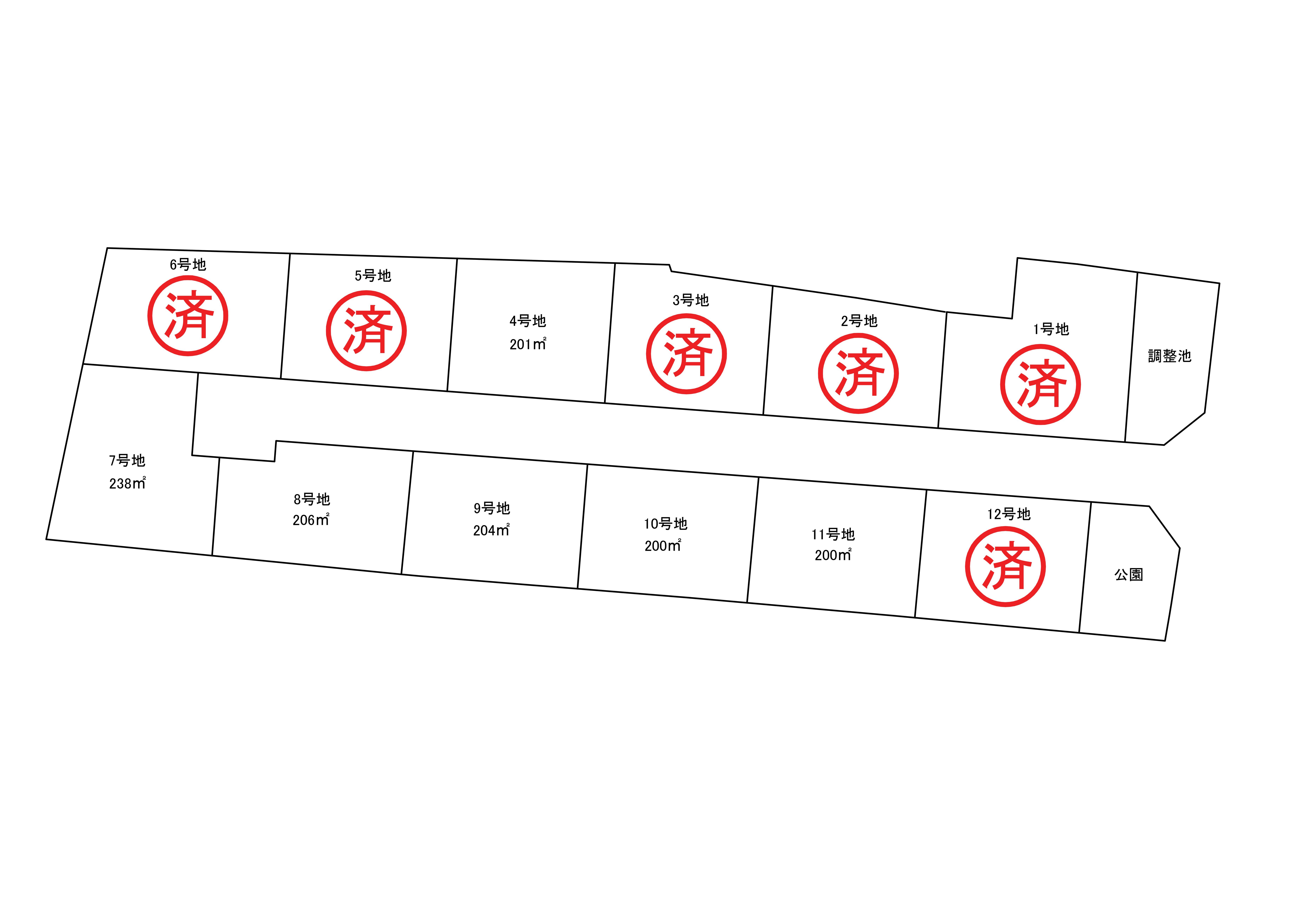 | 敷地面積 | 1号地:267㎡ 2号地:201㎡ 3号地:201㎡ 4号地:201㎡ 5号地:201㎡ 6号地:215㎡ 7号地:238㎡ 8号地:206㎡ 9号地:204㎡ 10号地:200㎡ 11号地:200㎡ 12号地:200㎡ |