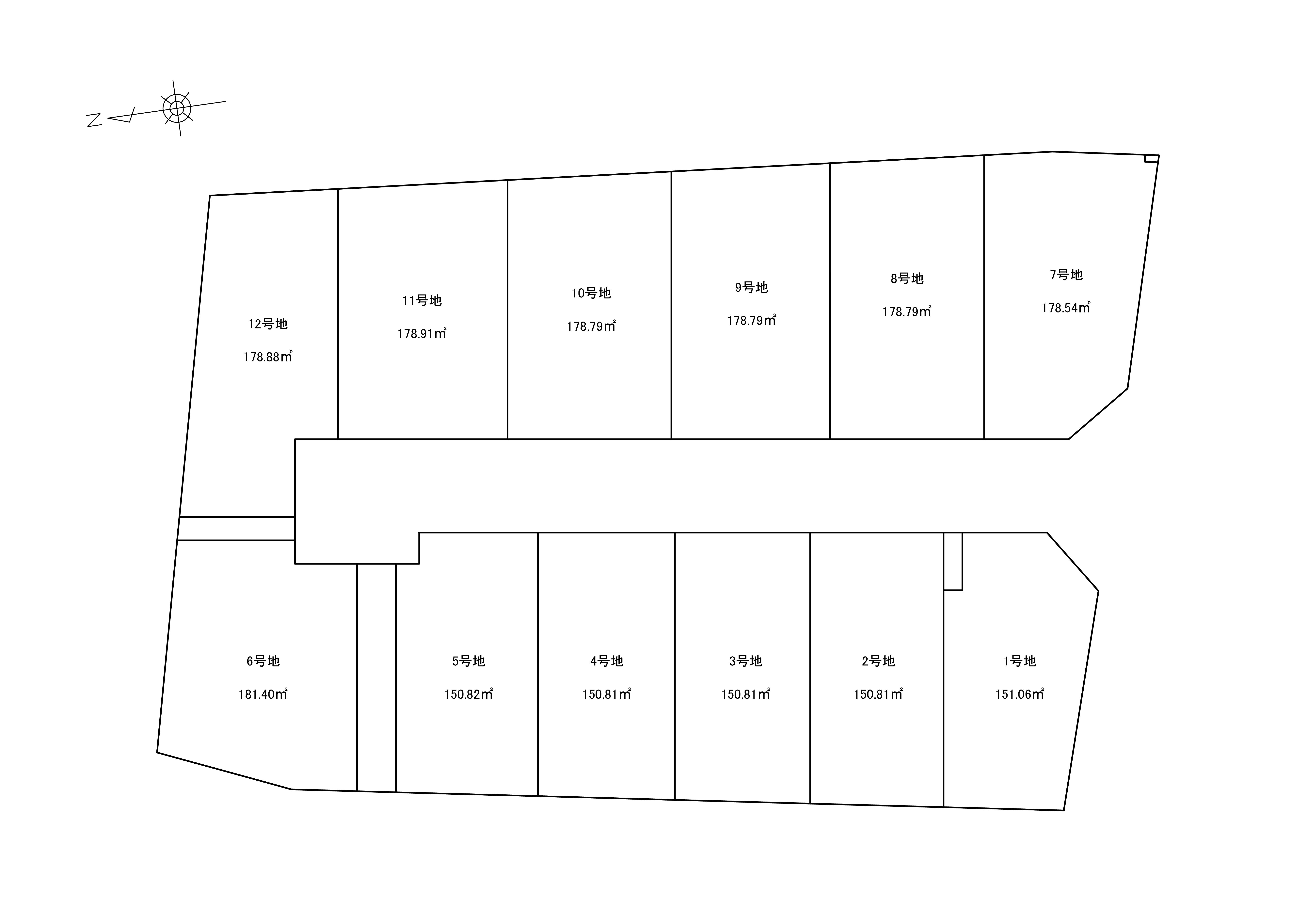 | 敷地面積 | 1号地:151㎡ 2号地:150㎡ 3号地:150㎡ 4号地:150㎡ 5号地:150㎡ 6号地:181㎡ 7号地:178㎡ 8号地:178㎡ 9号地:178㎡ 10号地:178㎡ 11号地:178㎡ 12号地:178㎡ |